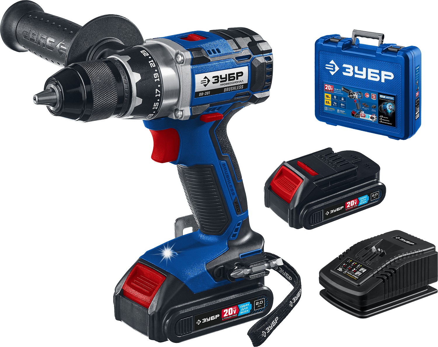 Дрель-шуруповерт ЗУБР Т7, 20 В, 70 Н·м, 2 АКБ (2 А·ч), бесщеточная, кейс, Профессионал (DB-201-22) - купить в магазине РЕЗЕЦ