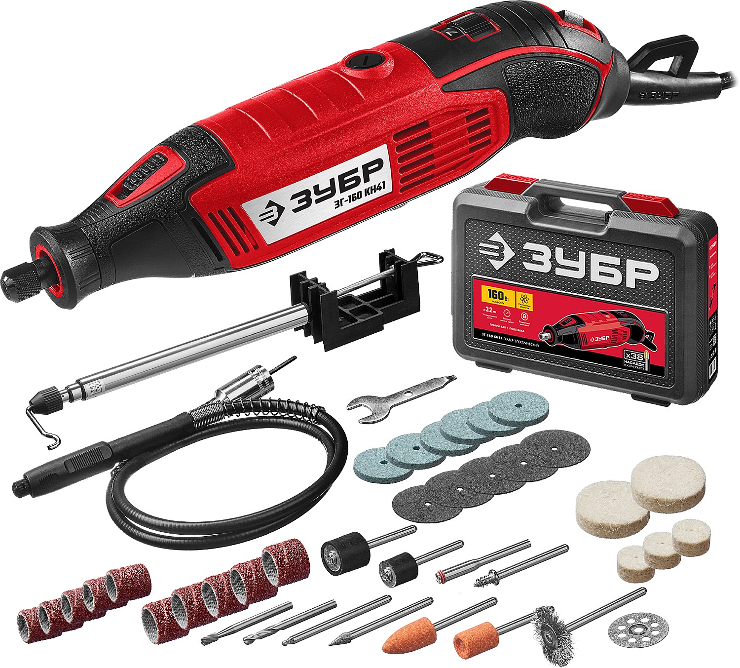 Гравер электрический ЗУБР 160 Вт, d 3.2 мм, 41 предмет,кейс (ЗГ-160 КН41) - купить в магазине РЕЗЕЦ
