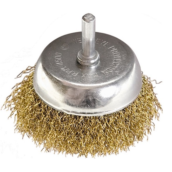 Корщетка чашечная, со шпилькой, стальная латунированная волнистая проволока 50 мм - купить в магазине РЕЗЕЦ