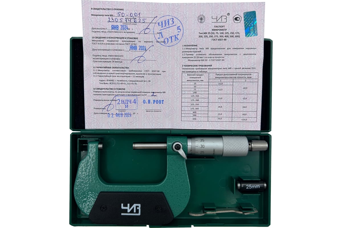 Микрометр МК- 50 0.01 (ГРСИ №50593-12) ЧИЗ поверка - купить в магазине РЕЗЕЦ