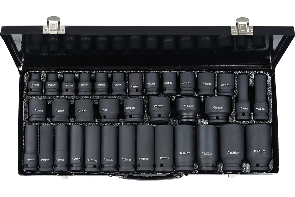 Набор головок ударных 35 шт, 8-32 мм, 1/2", металлический кейс Airline ATAS404 - купить в магазине РЕЗЕЦ