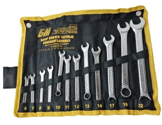 Набор ключей комб., 6-32мм, 22шт, CrV,тетроновая сумка (БМ 971422) - купить в магазине РЕЗЕЦ