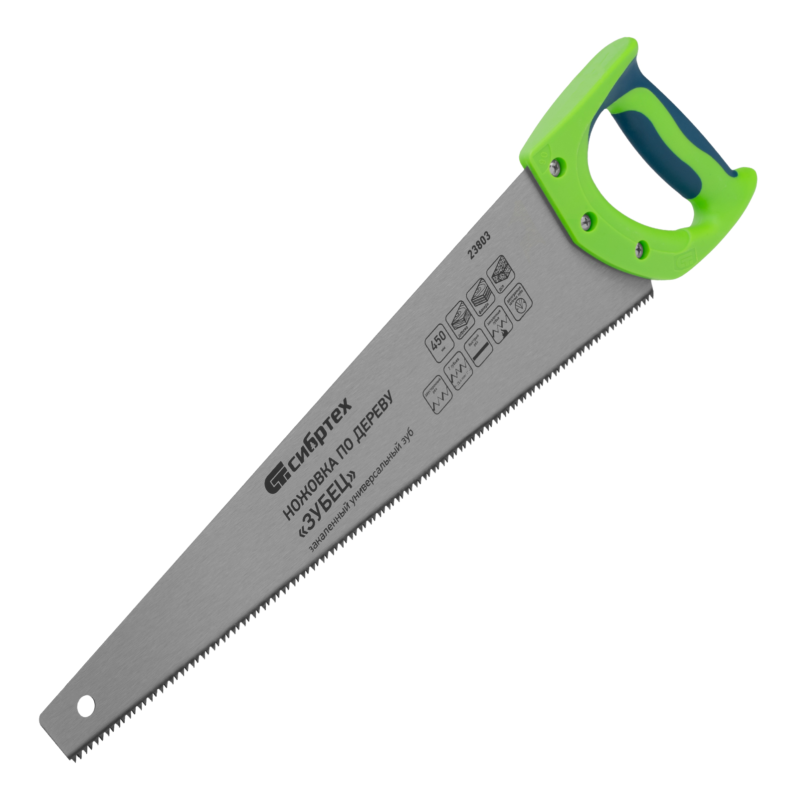 Ножовка по дереву "Зубец", 450 мм, 7-8 TPI, каленый зуб 2D, двухкомпонентная рукоятка Сибртех