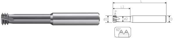 Резьбофреза М10х1,5 тв. сплав. трехзаходная M10x1.5x8.0x30xD8x60 60° BSKT - купить в магазине РЕЗЕЦ